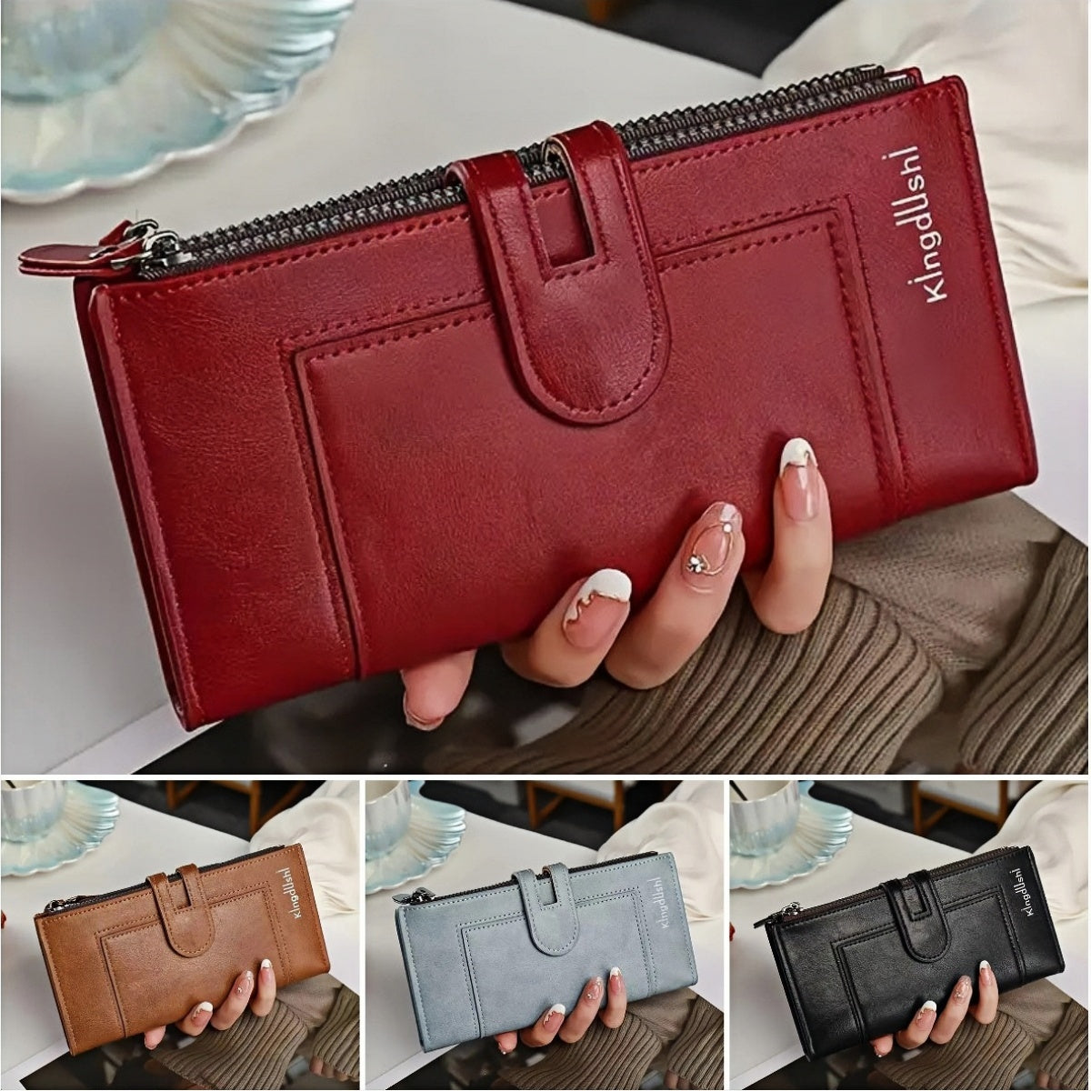 💰【cumpără unul primește unul gratuit】Portofel retro pentru femei din piele naturală, cu slot pentru mai multe carduri, cu fermoar dublu-3850859