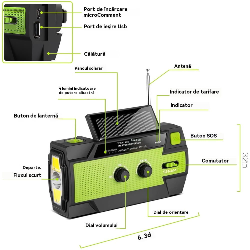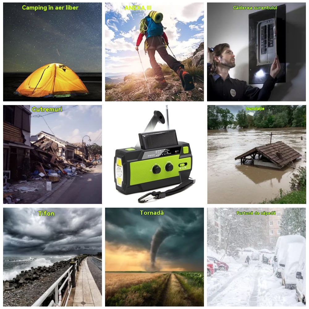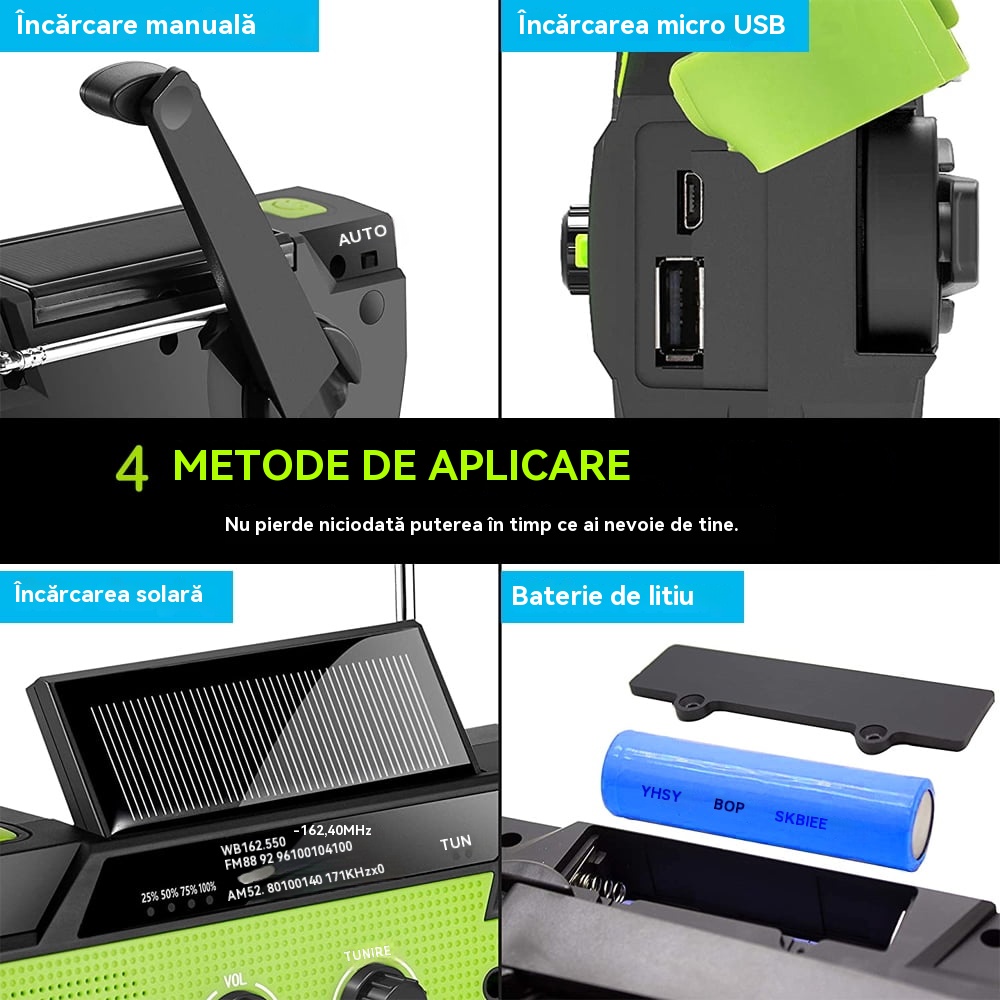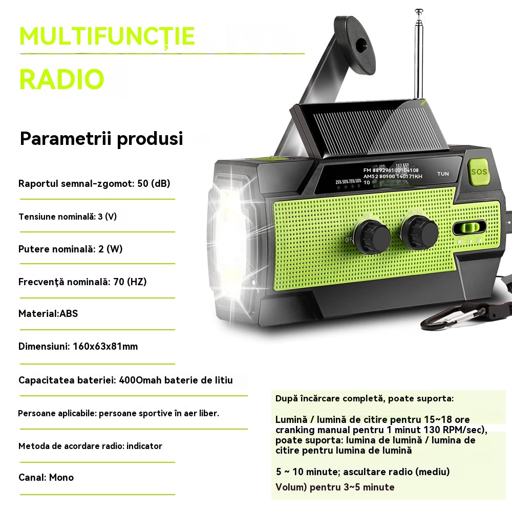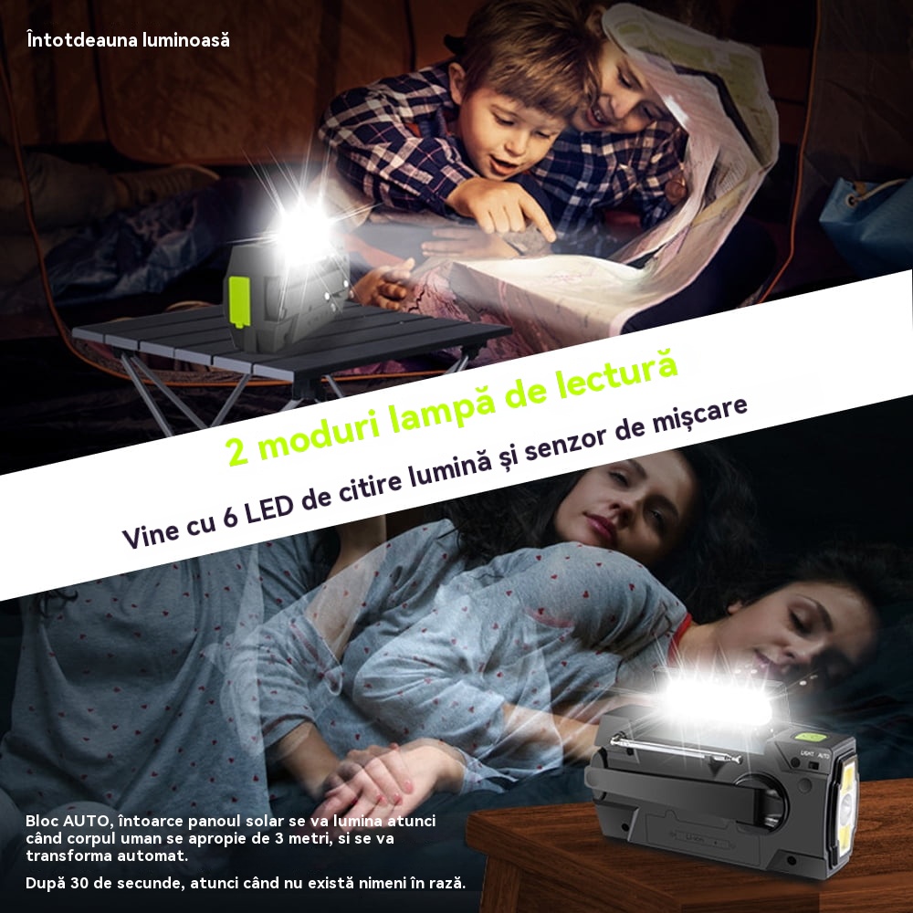 🏕️Lanternă portabilă multifuncțională cu radio AM, lanternă solară cu manivelă, lanternă de urgență