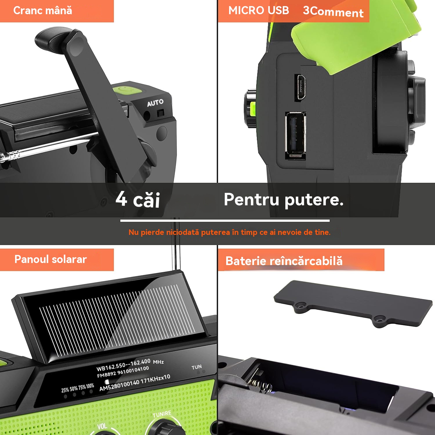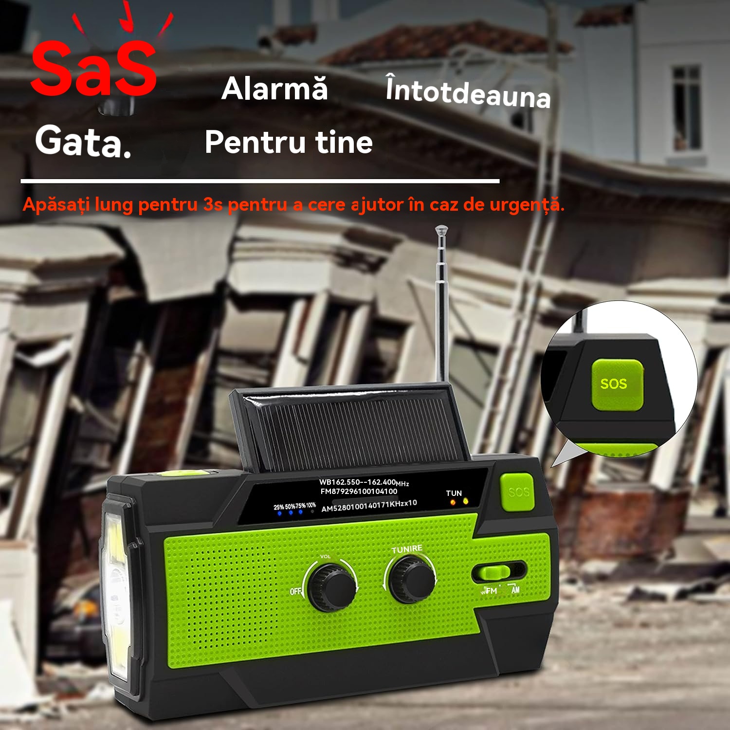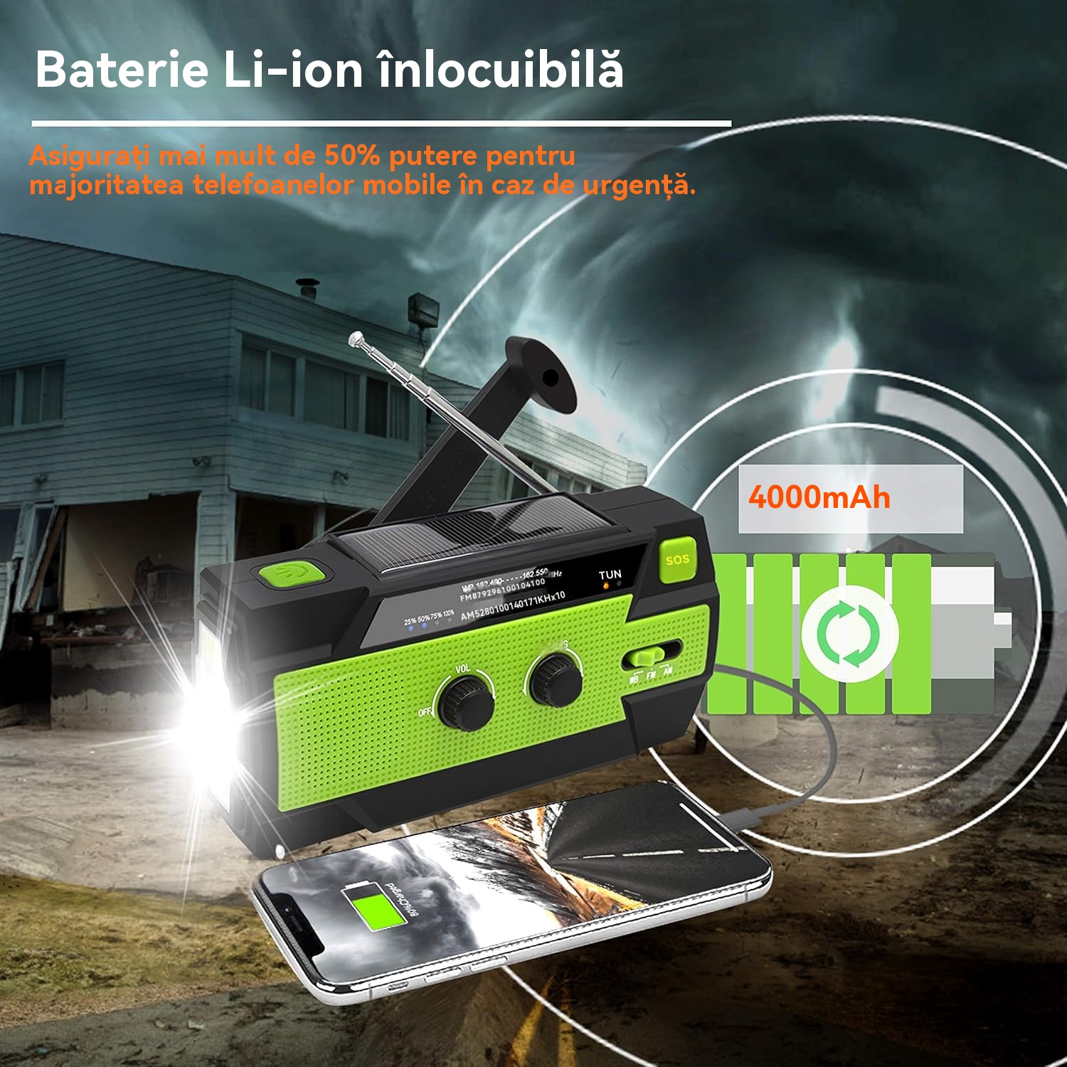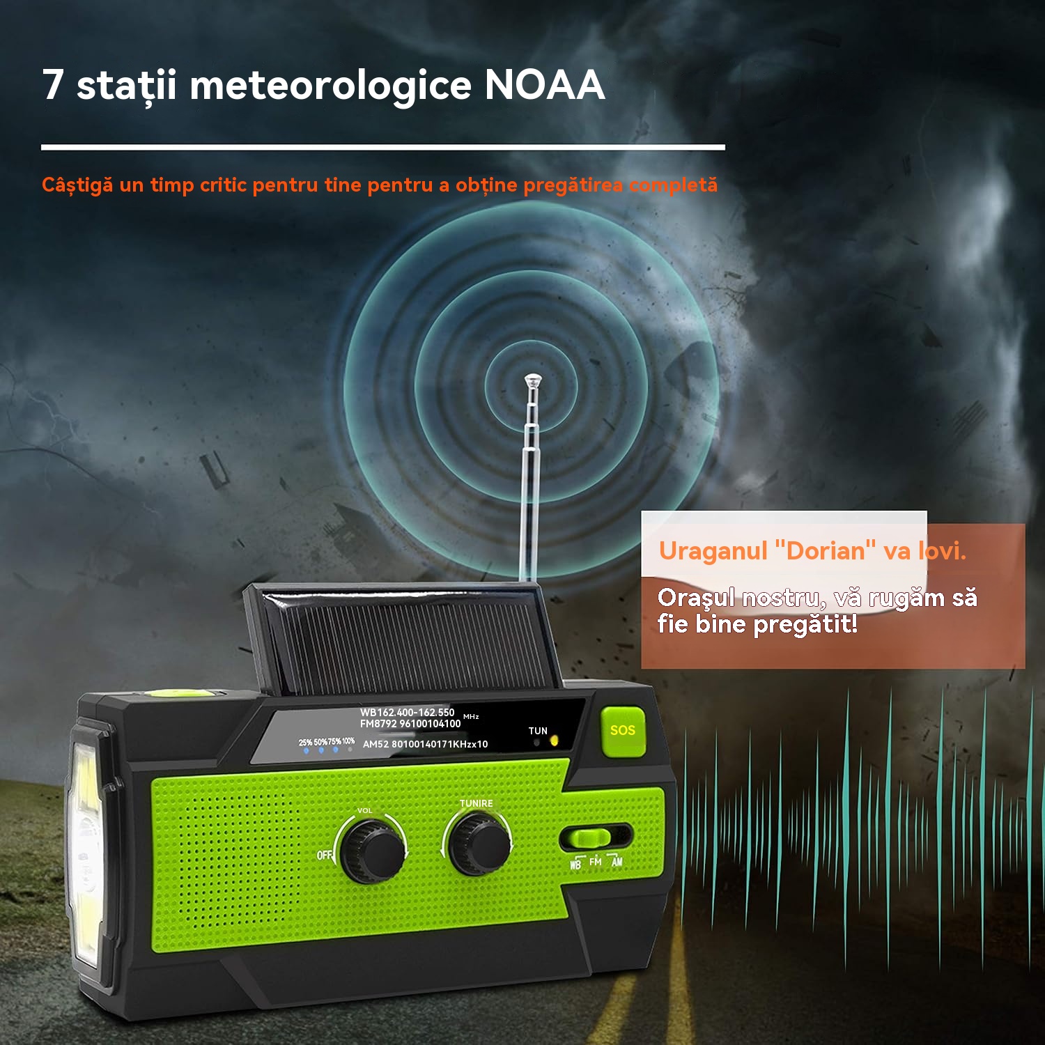 🏕️Lanternă portabilă multifuncțională cu radio AM, lanternă solară cu manivelă, lanternă de urgență