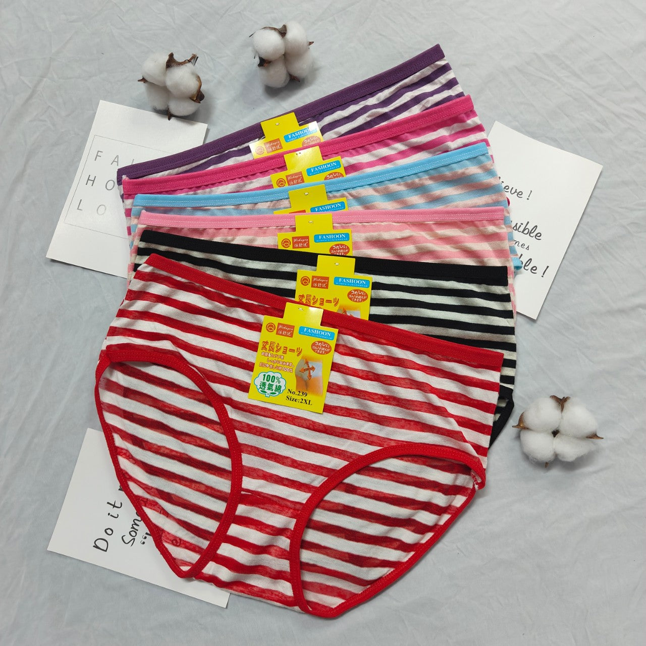 💥【Cumpărați 6 Obțineți 6 gratuit】Lenjerie nouă cu dungi cu talie înaltă din bumbac pur pentru femei de vârstă mijlocie și în vârstă-3899482