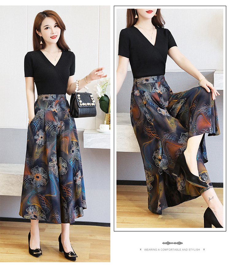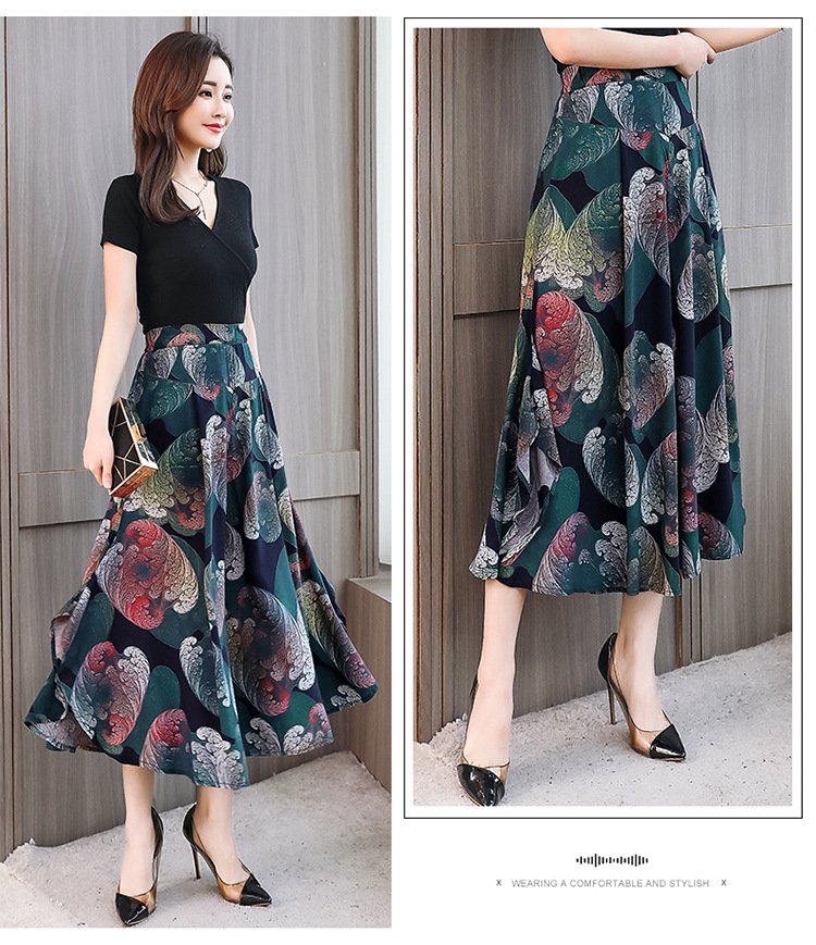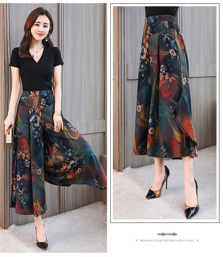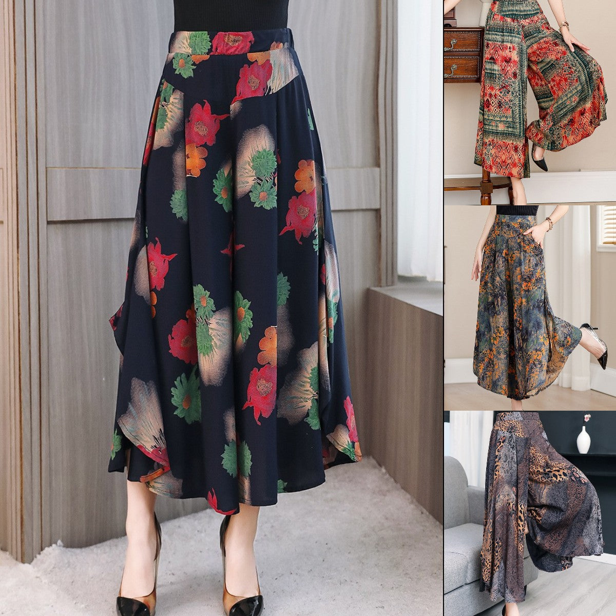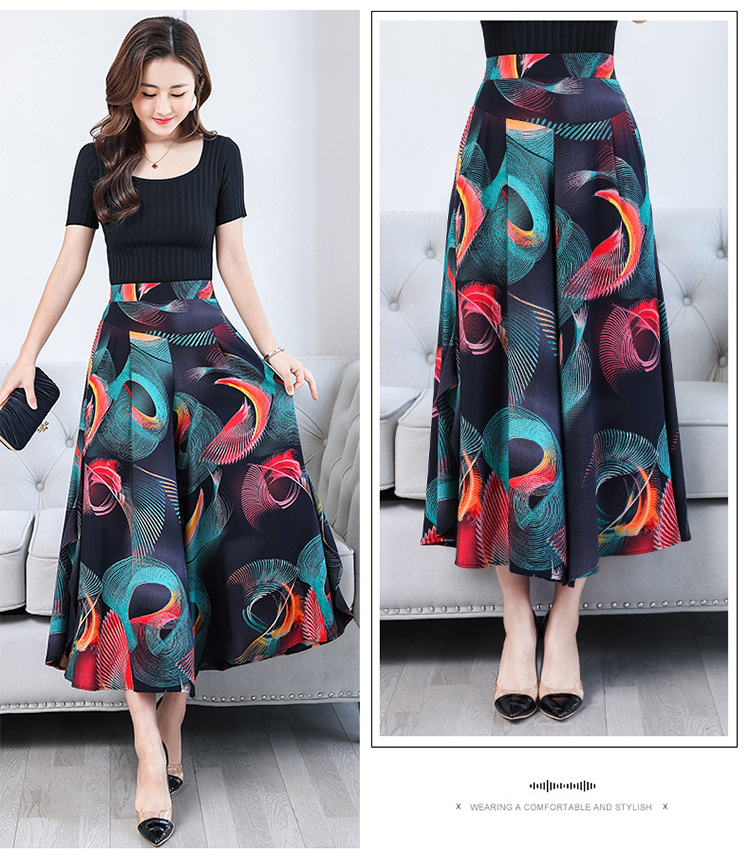 š„ćFusta de Ć®naltÄ calitatećć40-120kgćš»vara noua marime mare imprimata talie inalta pantaloni largi cu picioare late
