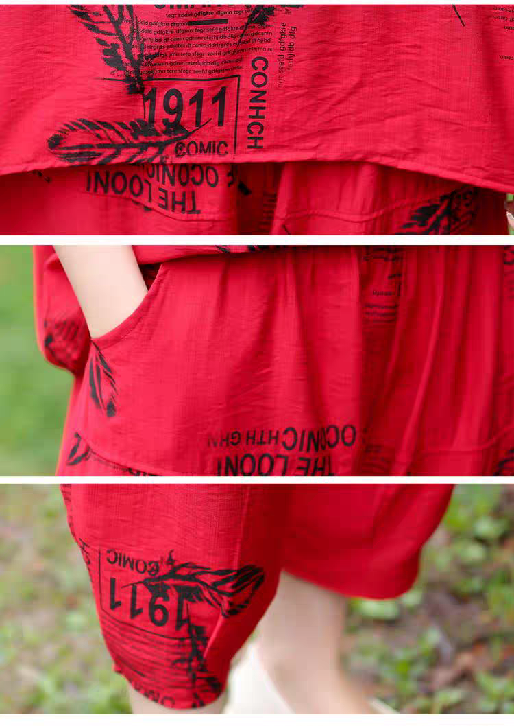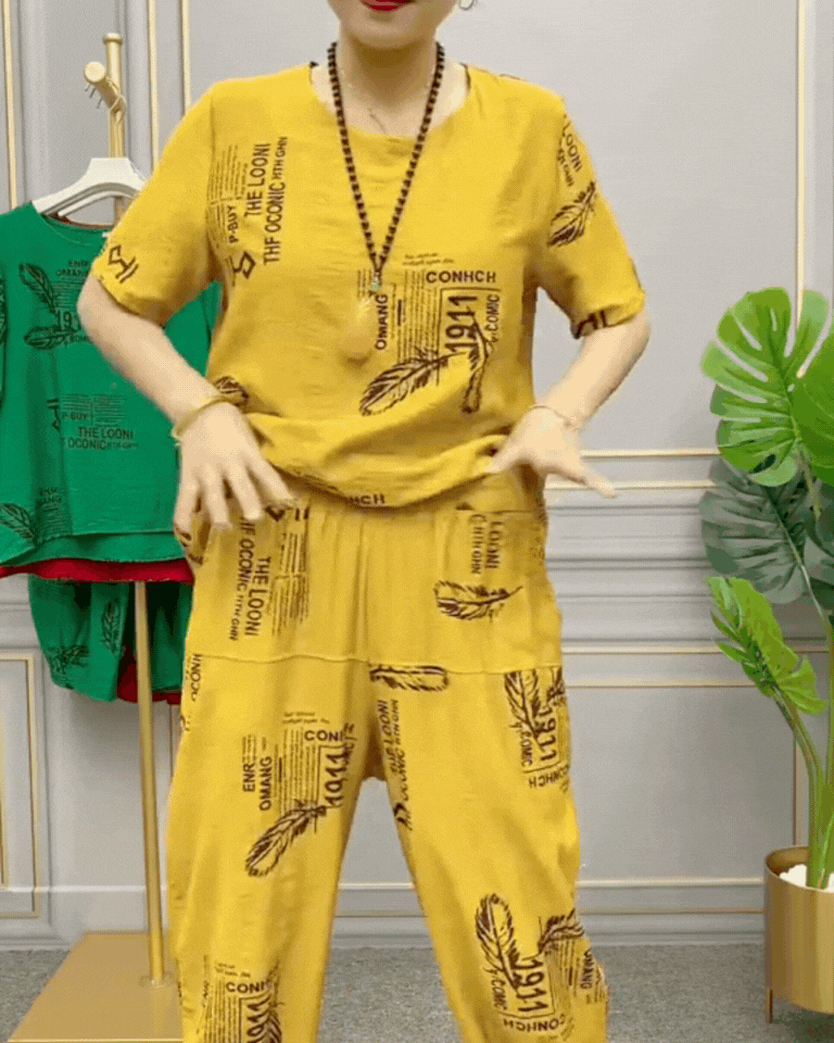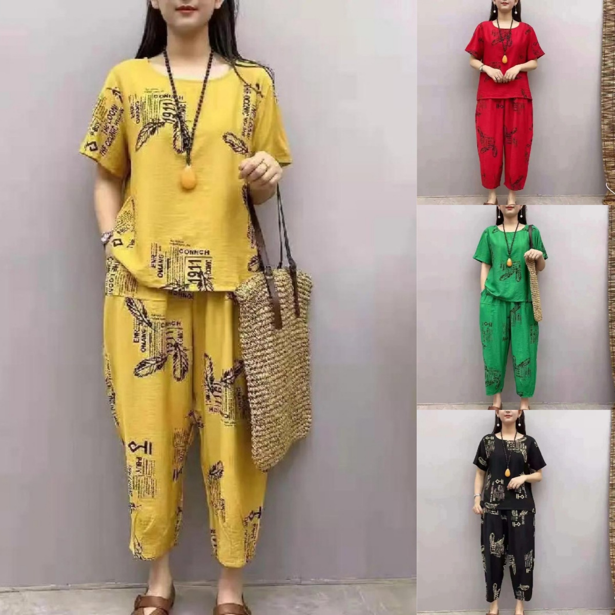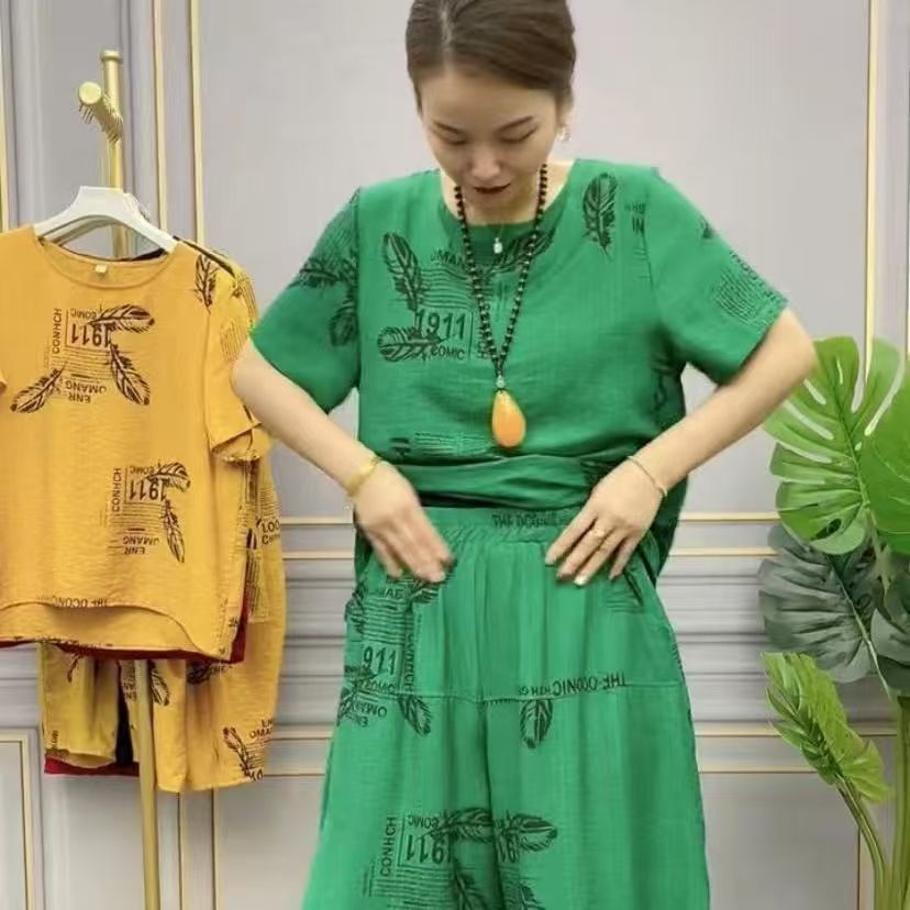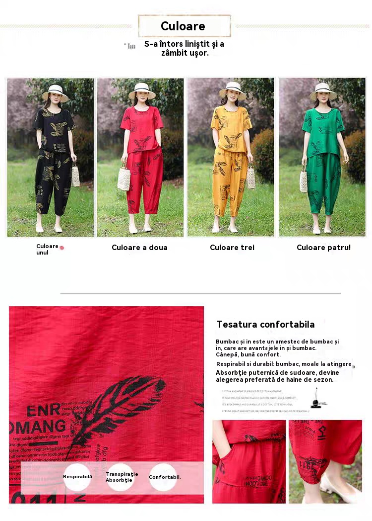 🔥【Top + Pantaloni】🔥Costum de femeie cu mânecă scurtă, stil nou 2025, lejer, pentru femei de vârstă mijlocie și în vârstă