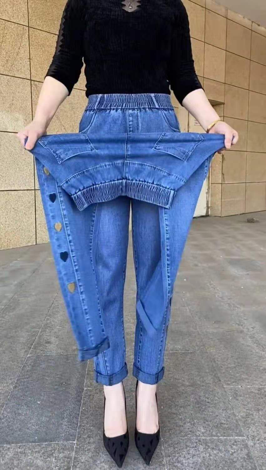 🔥49% OFF🔥[M-5XL] Blugi elastici cu talie înaltă, versatili, în formă de inimă --3965741