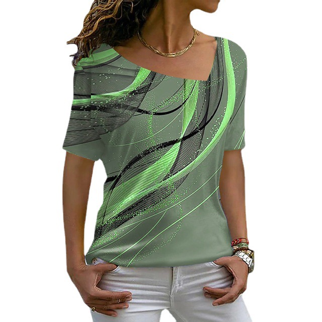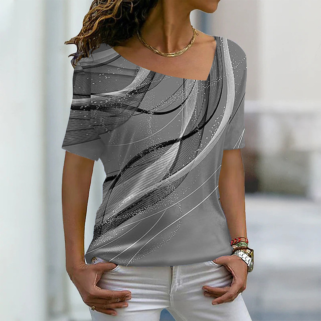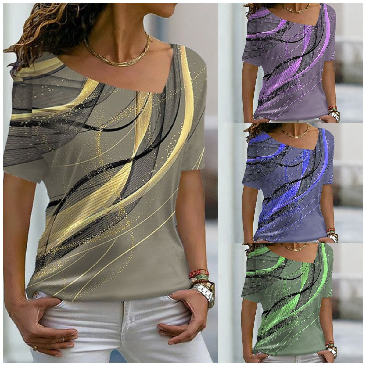 2023 Tricou pentru femei cu mânecă scurtă asimetrică cu decolteu în V