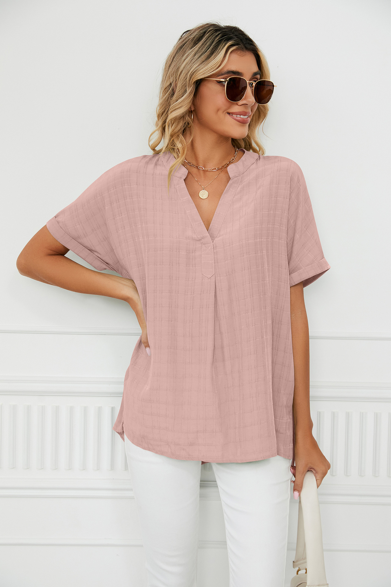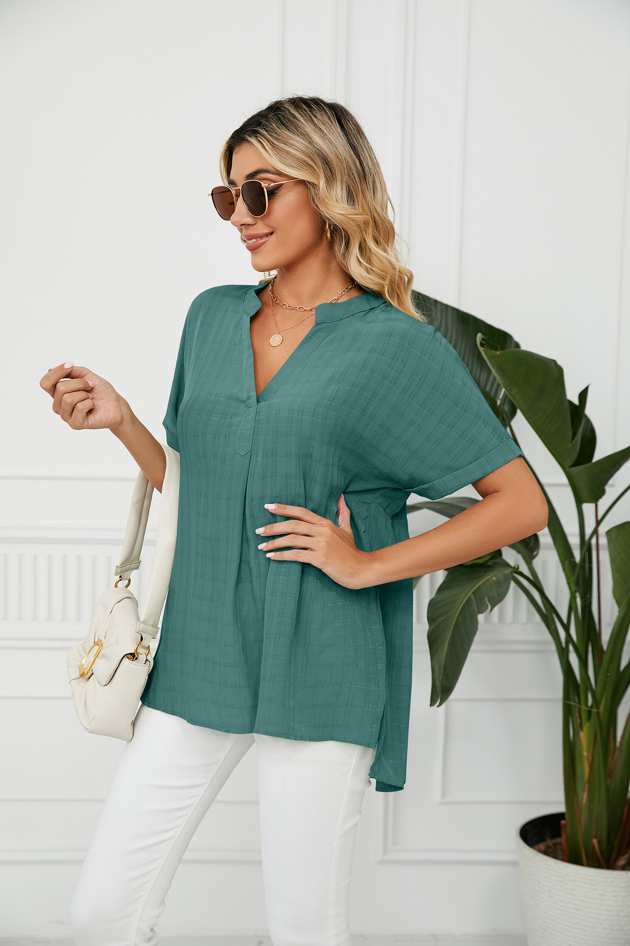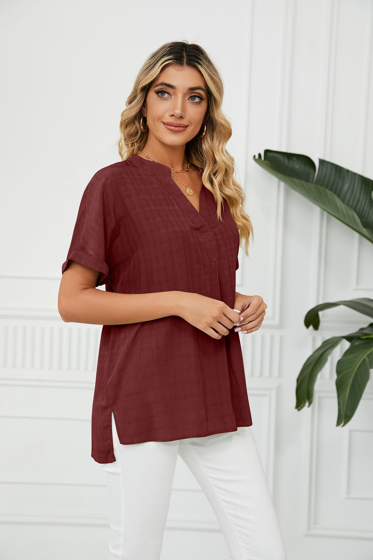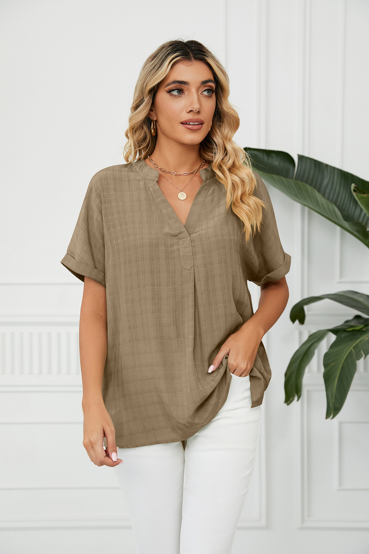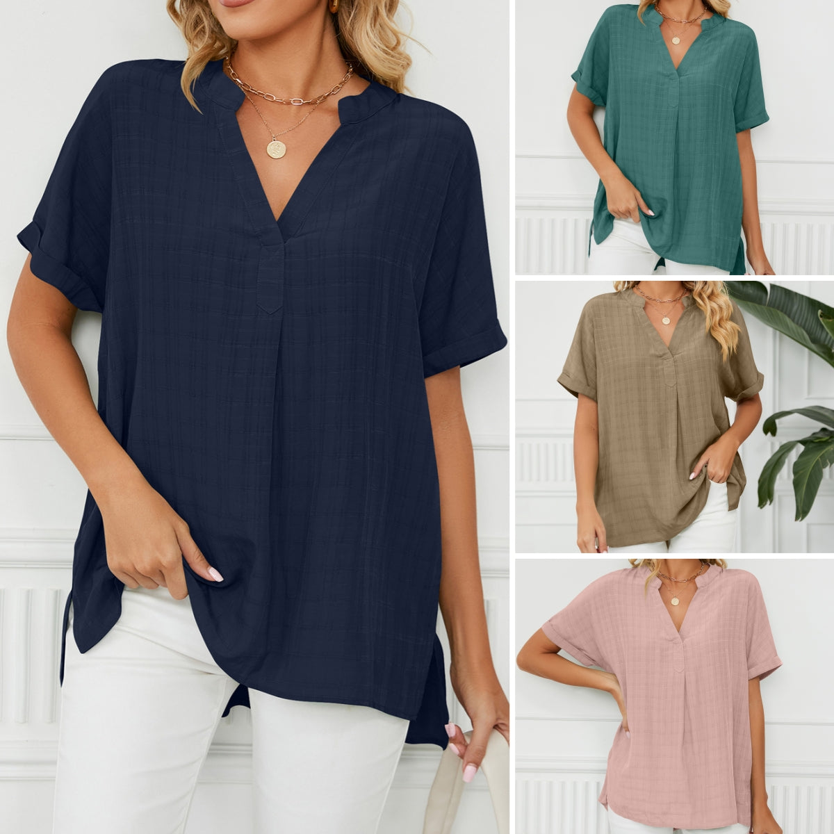 2025 Cămașă noua din bumbac V gât mâneci scurte lejer