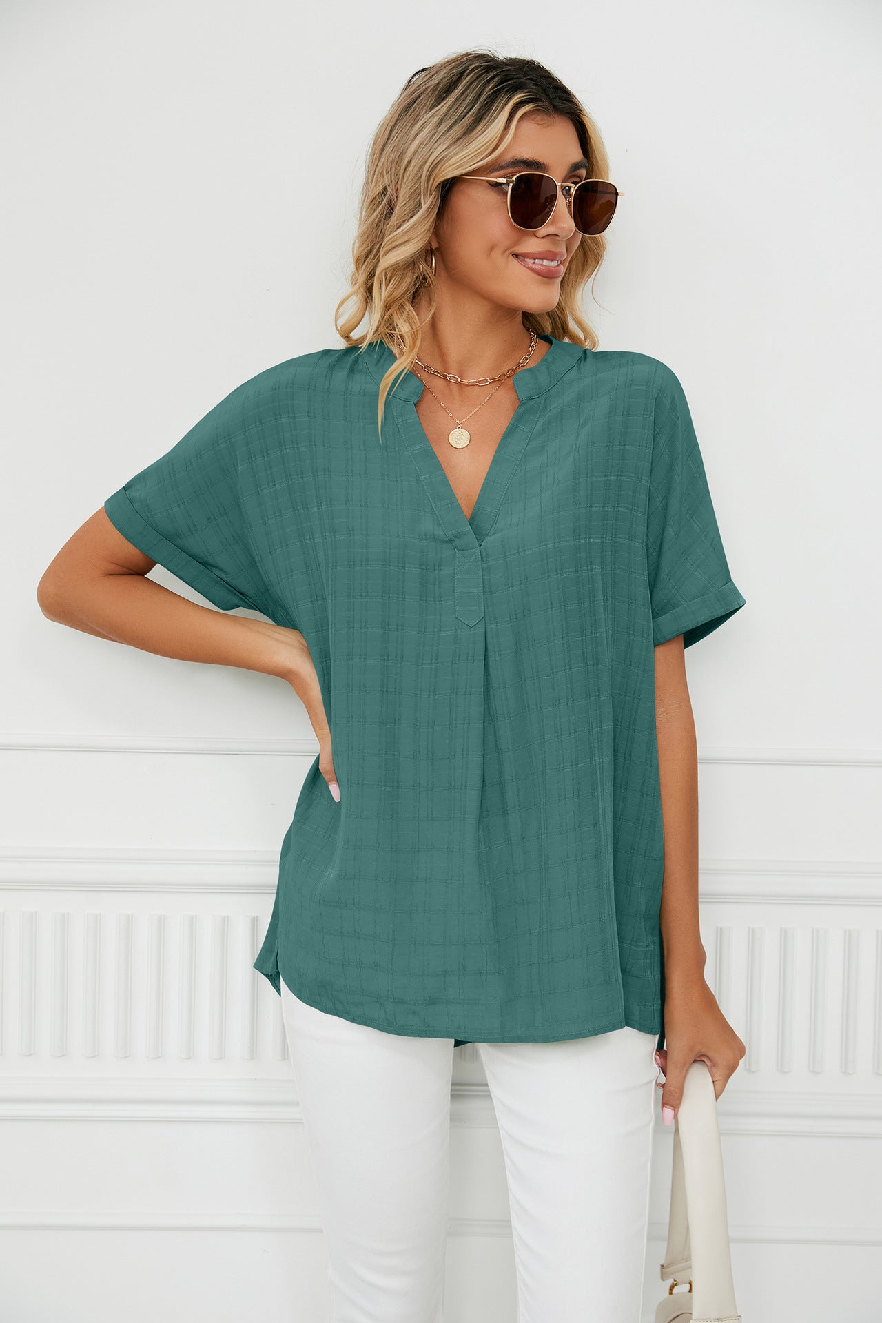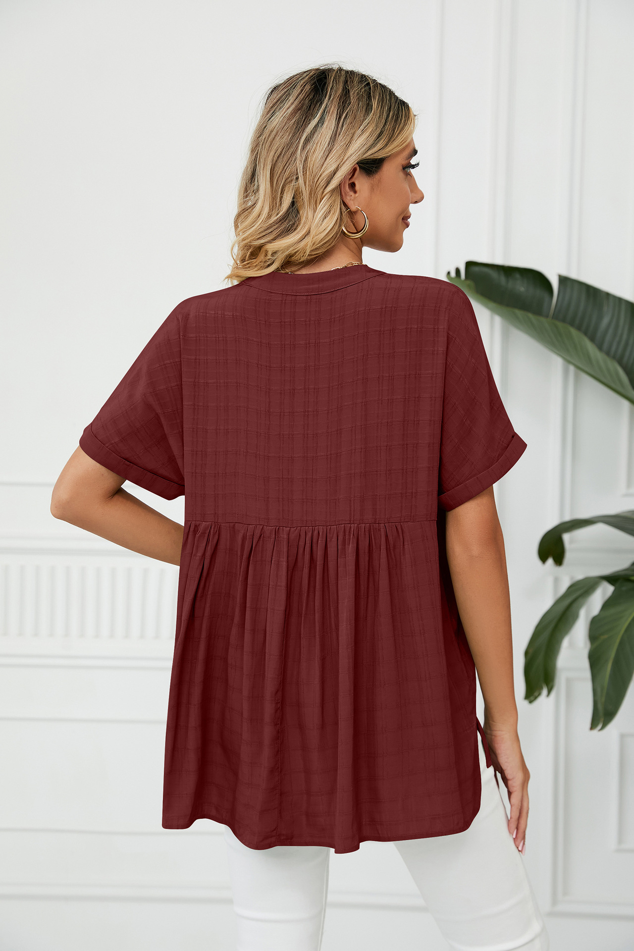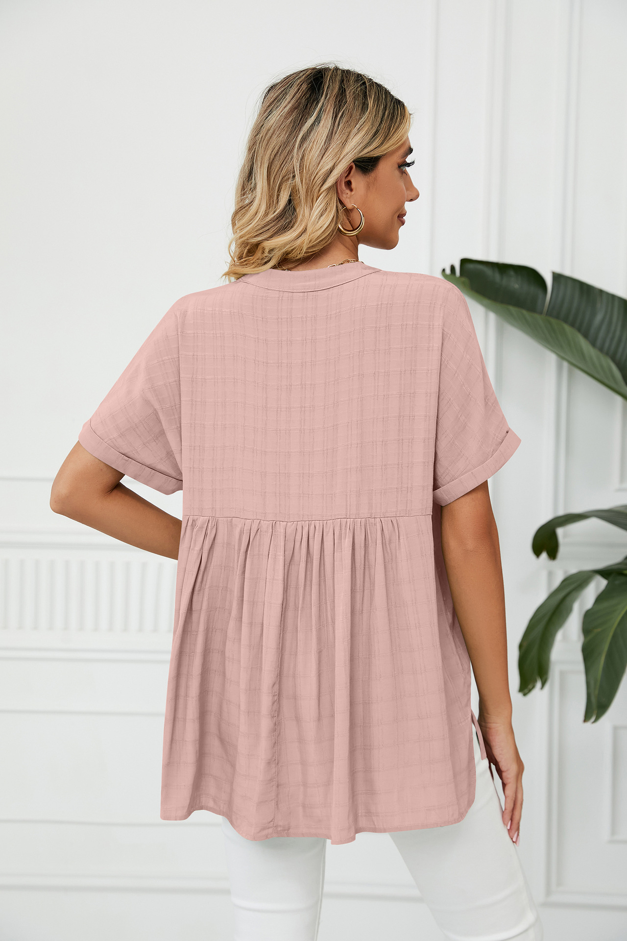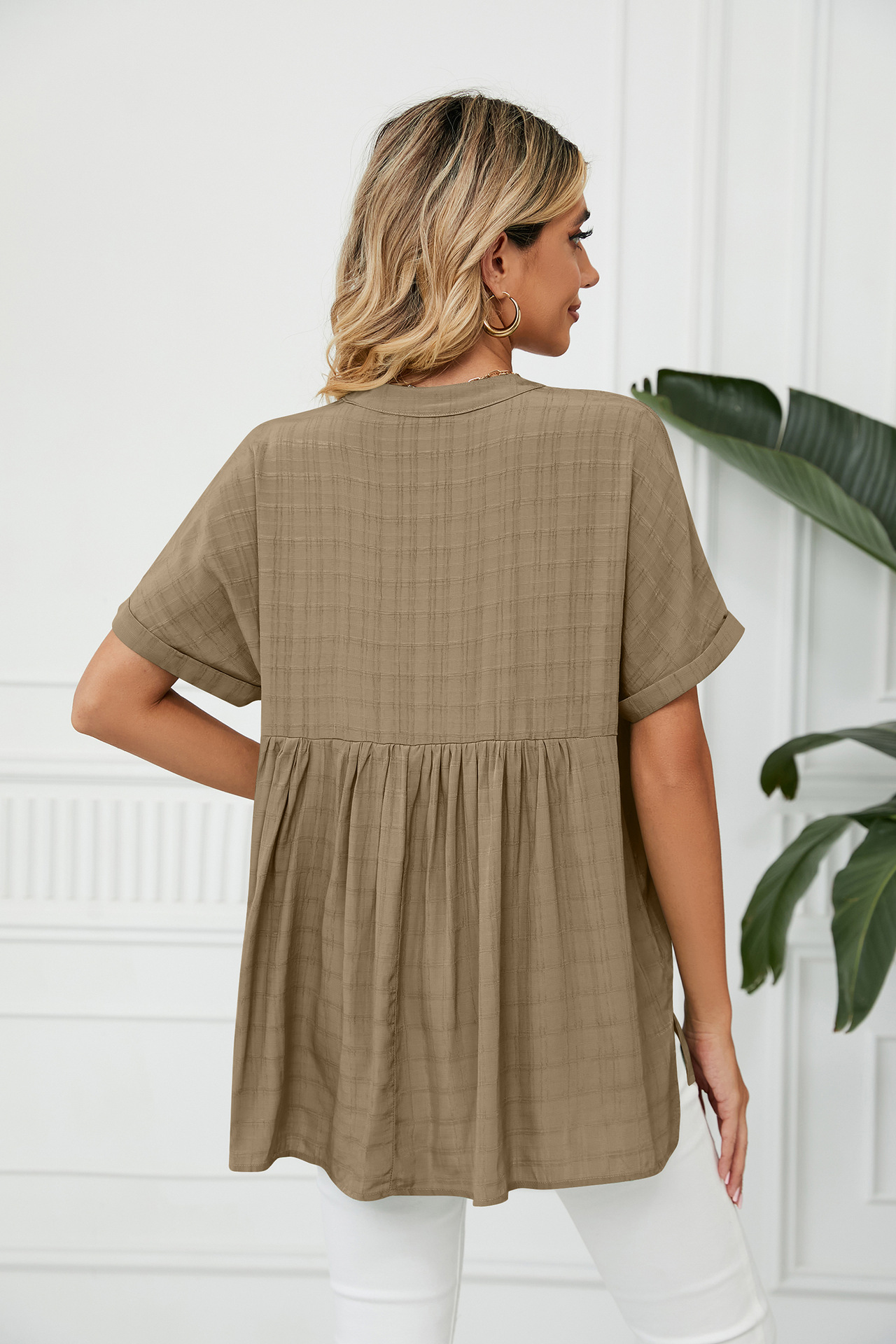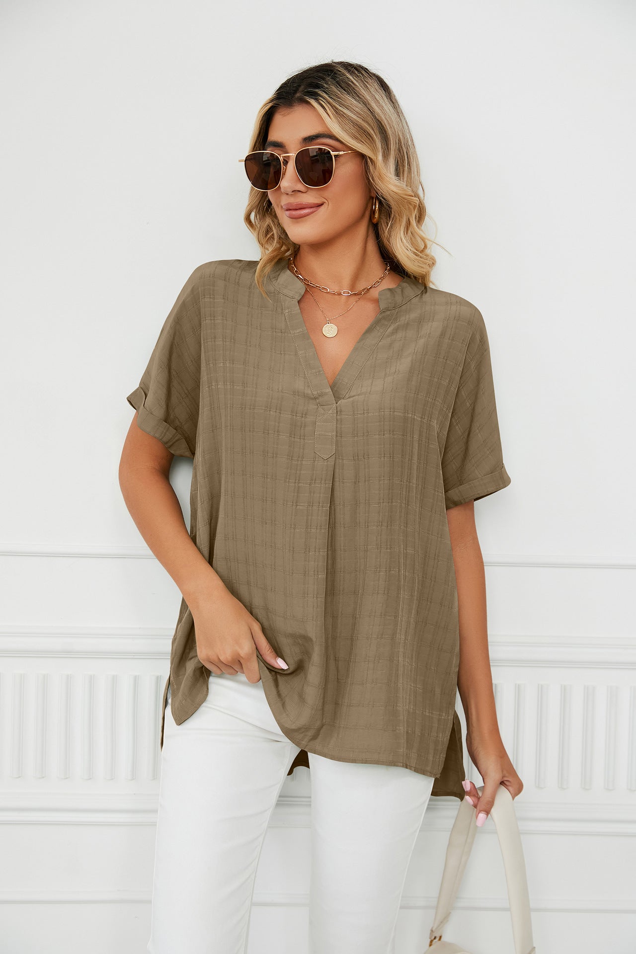 2025 Cămașă noua din bumbac V gât mâneci scurte lejer
