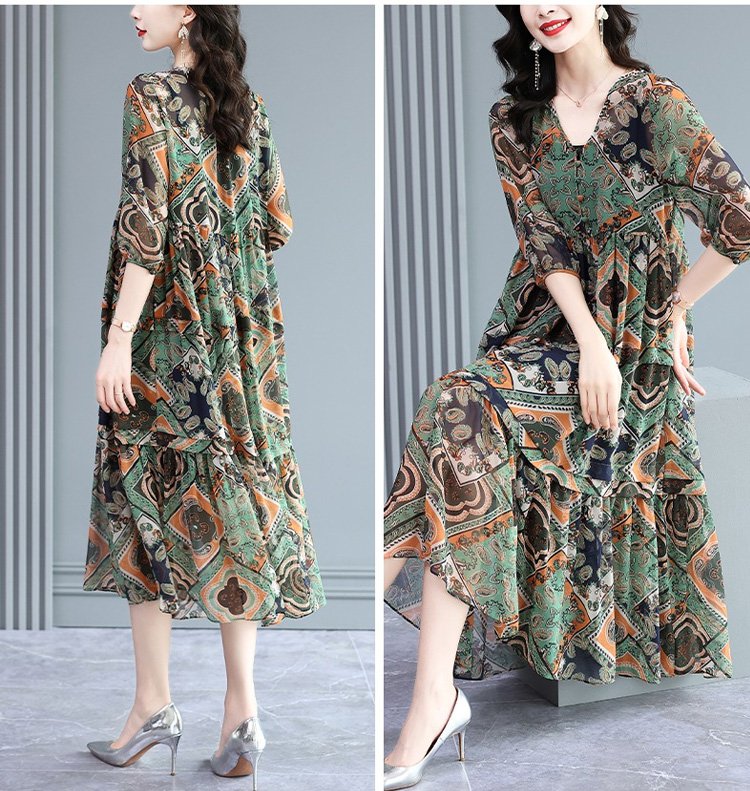 2025 Rochie Floral Vintage din Mătase de Gheață de Vară