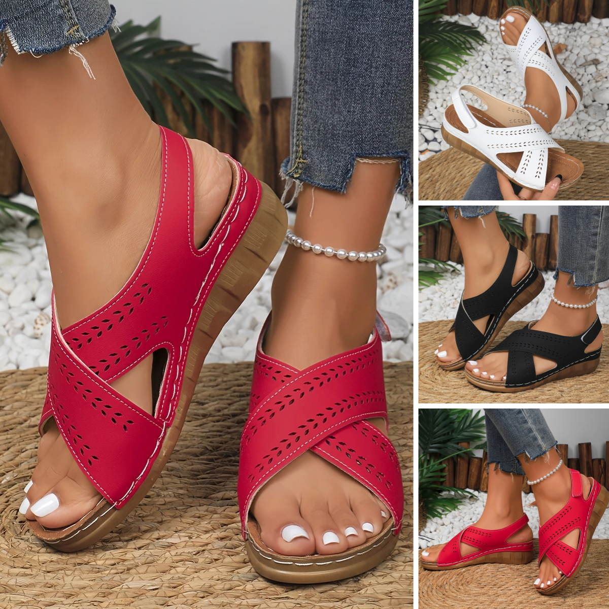 【36-43】 Sandale cu pană contrastante pentru femei Sandale confortabile cu curea la gleznă