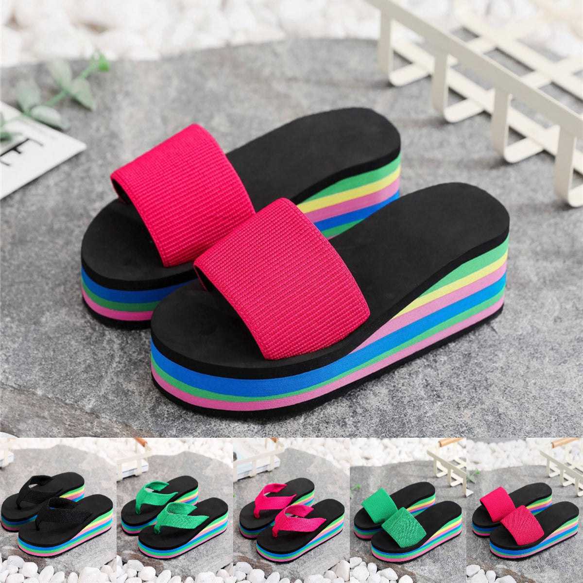 【Cumpărați 1 obțineți 1】Sandale curcubeu de vară cu talpă groasă pentru femei, papuci de plajă-3915084