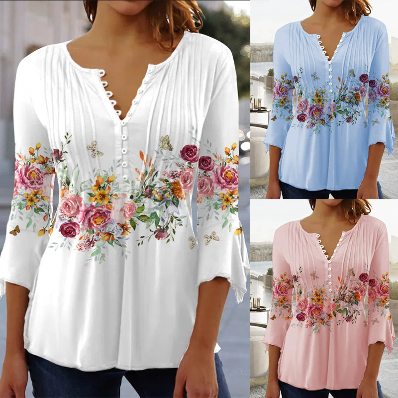 Femei de moda V-neck tipărite T-shirt