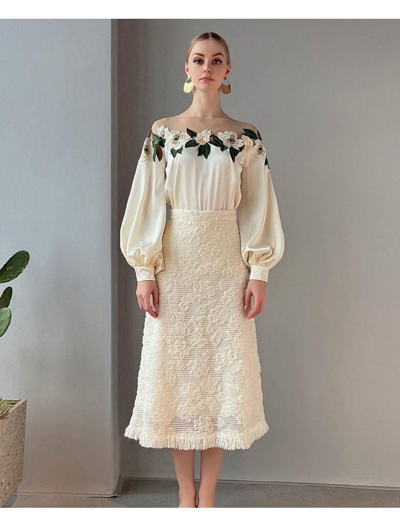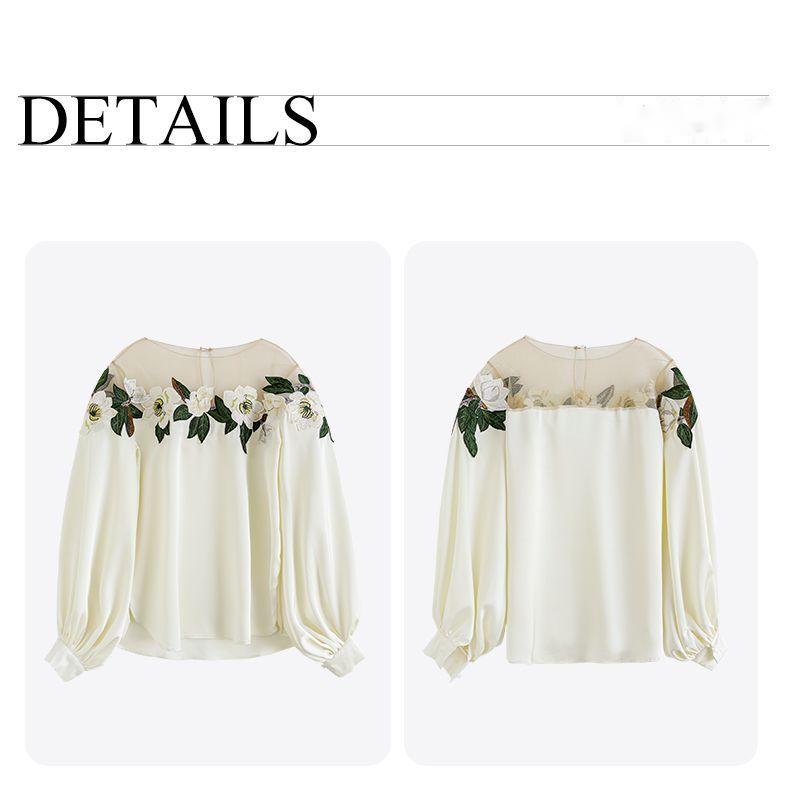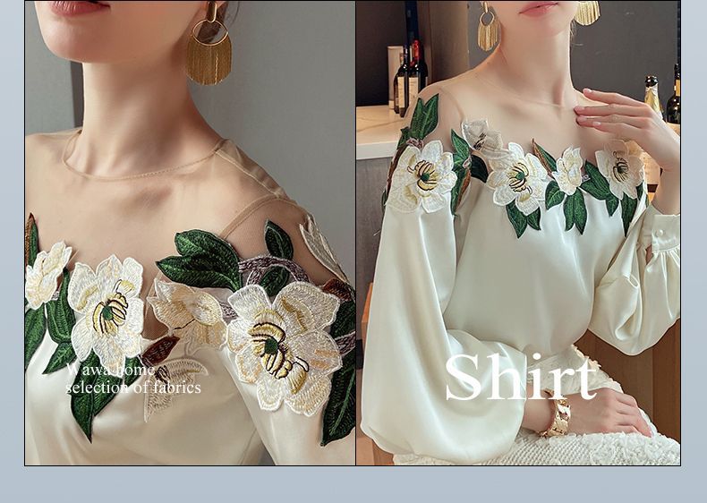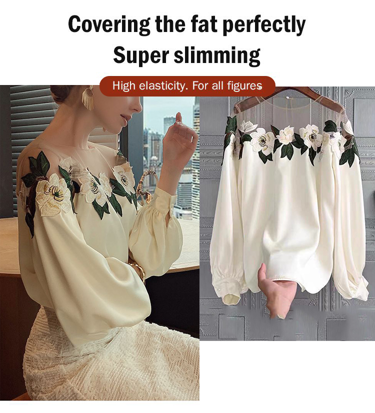 【M-3XL】Celebrități stil cusătură satin brodat bluză bluză femei 2025