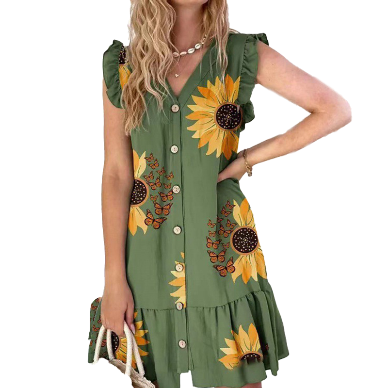 2024 Rochie nouă cu decolteu în V cu imprimeu liber