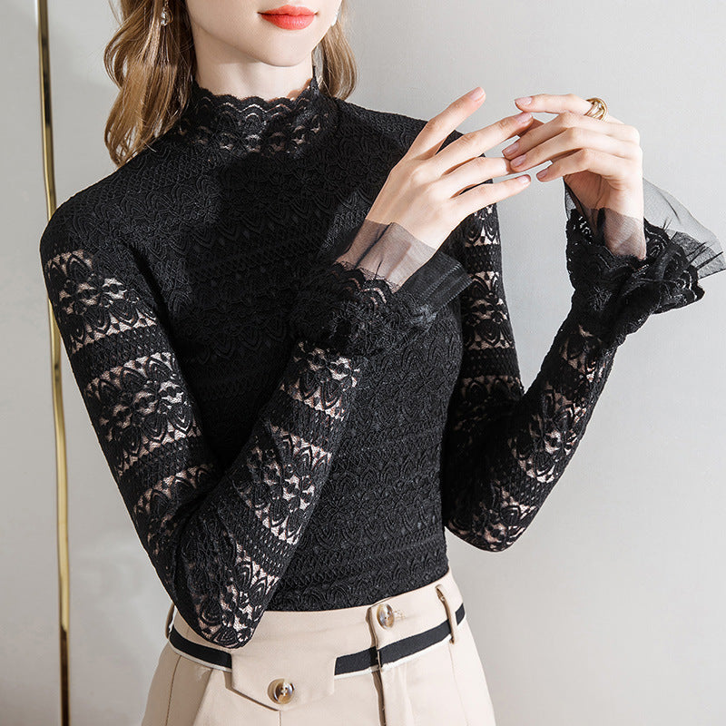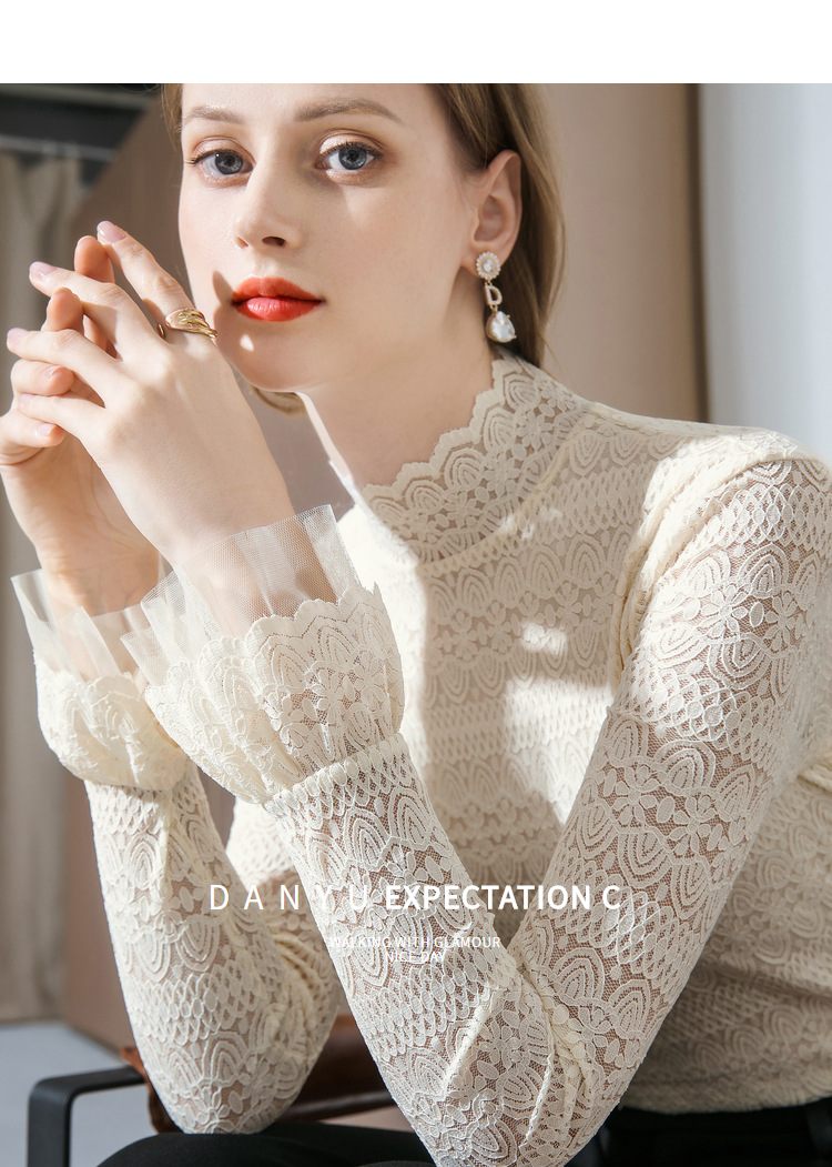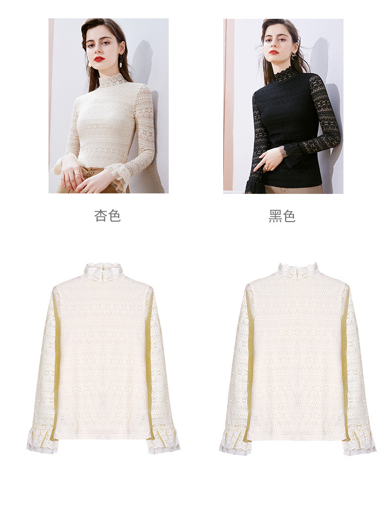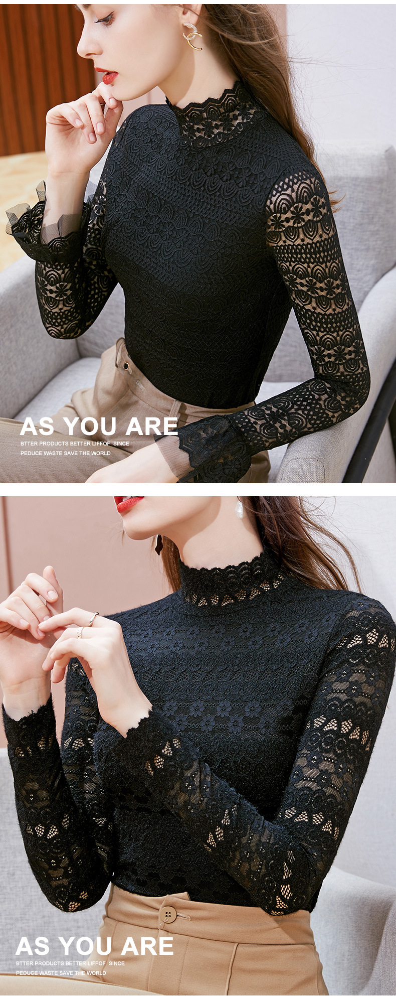 [S-3XL] Bluza dantelă iarna gât pe jumătate plus pluș îngroșat cald
