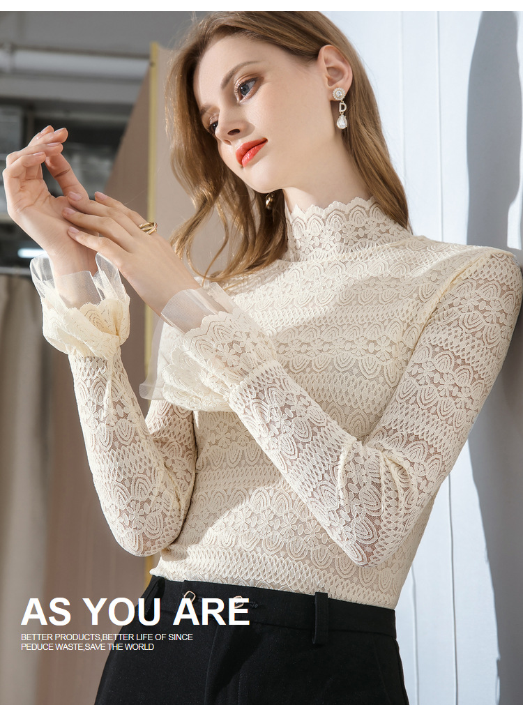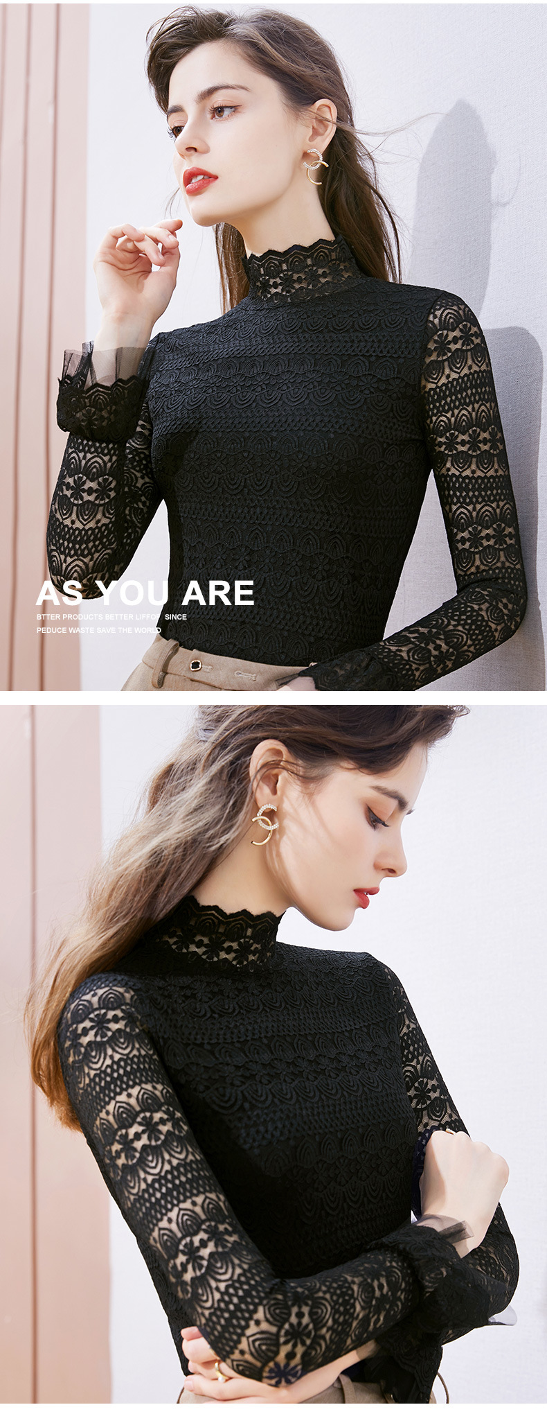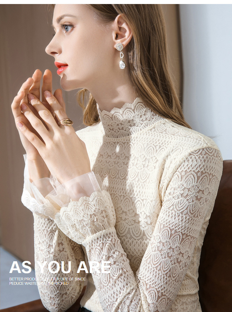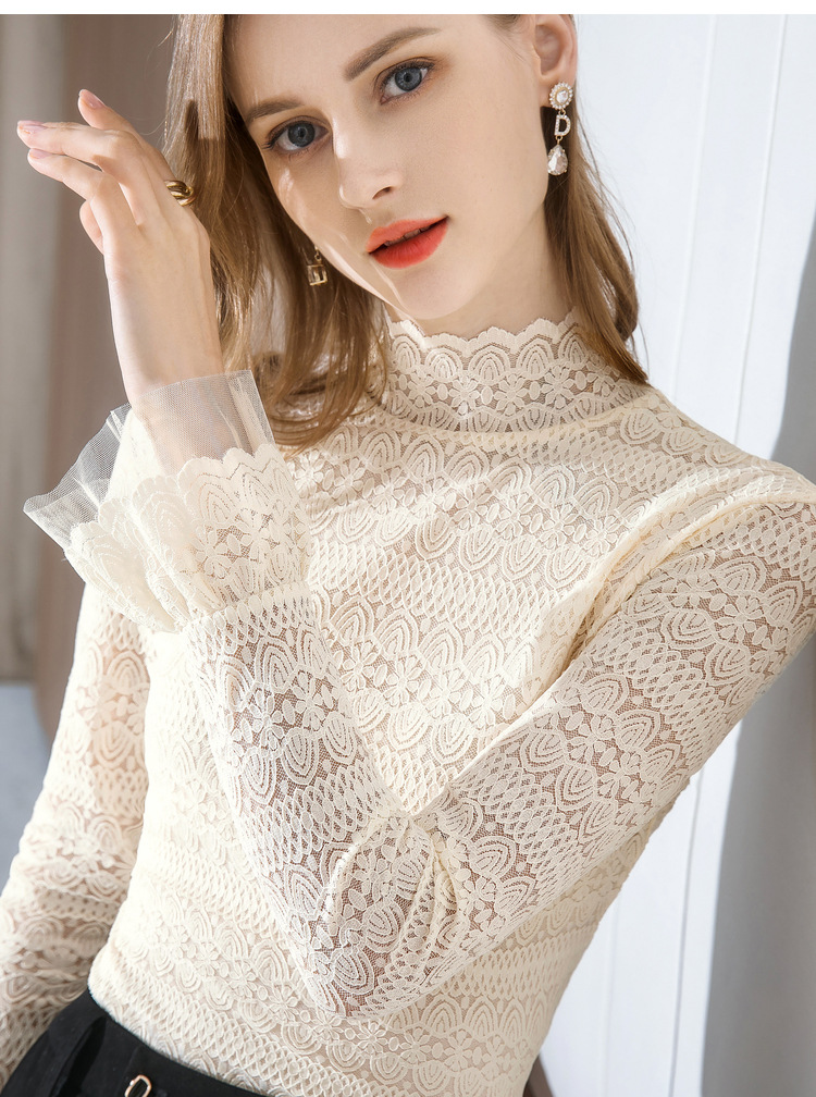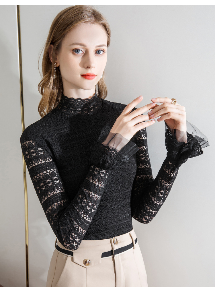 [S-3XL] Bluza dantelă iarna gât pe jumătate plus pluș îngroșat cald