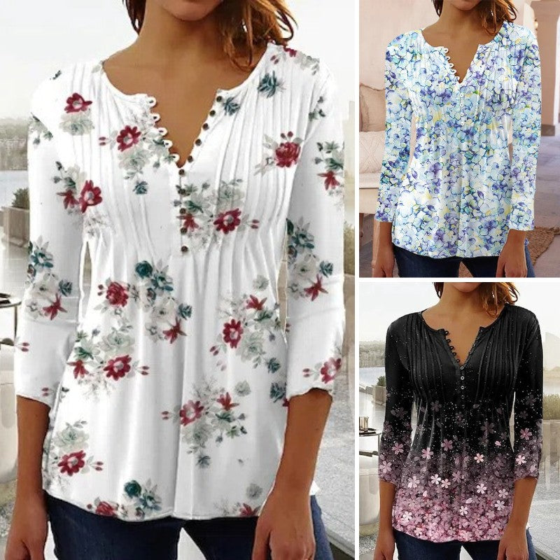 Tricou imprimat cu decolteu în V la modă pentru femei